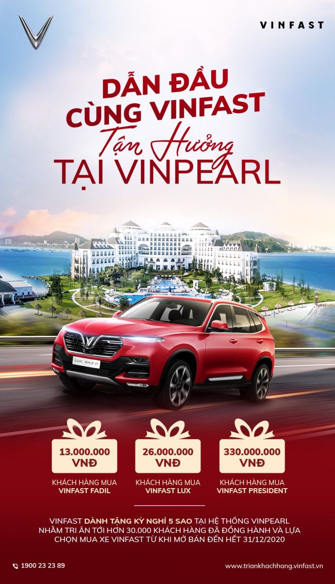 Nhằm tôn vinh hơn 30.000 vị khách đầu tiên đã cùng VinFast kiến tạo vị thế vững chắc cho giấc mơ xe Việt, VinFast tặng kỳ nghỉ đẳng cấp 3 ngày 2 đêm tại hệ thống khách sạn, resort Vinpearl trên toàn quốc. Cụ thể: